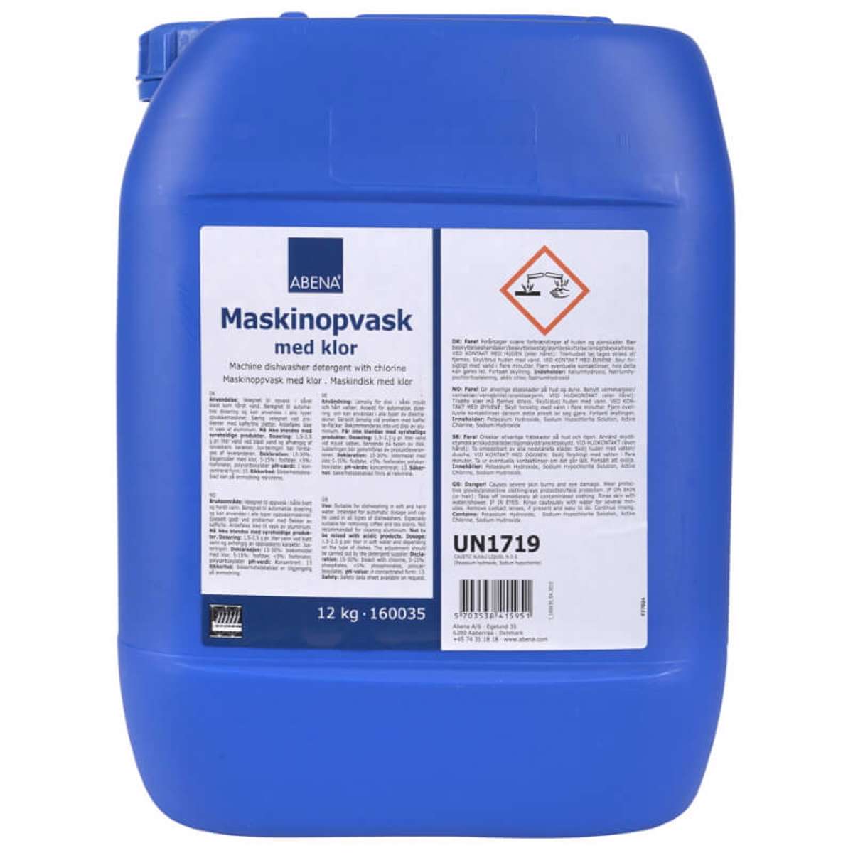 Flydende maskinopvask fra Abena med klor, uden farve og parfume. Maskinopvaskemidlet er velegnet til al opvask i såvel blødt som hårdt vand.Beregnet til automatisk dosering og kan anvendes i alle typer opvaskemaskiner.