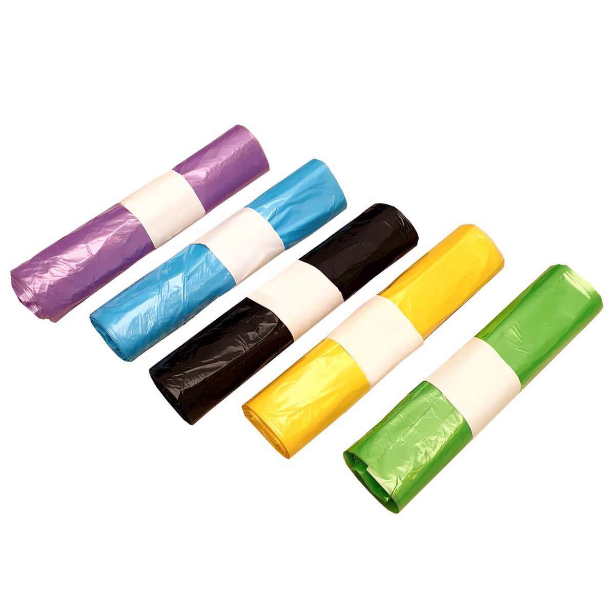 Findes i hele 5 farver for brug ved kildesortering: Blå, lilla, gul, grøn og sort.