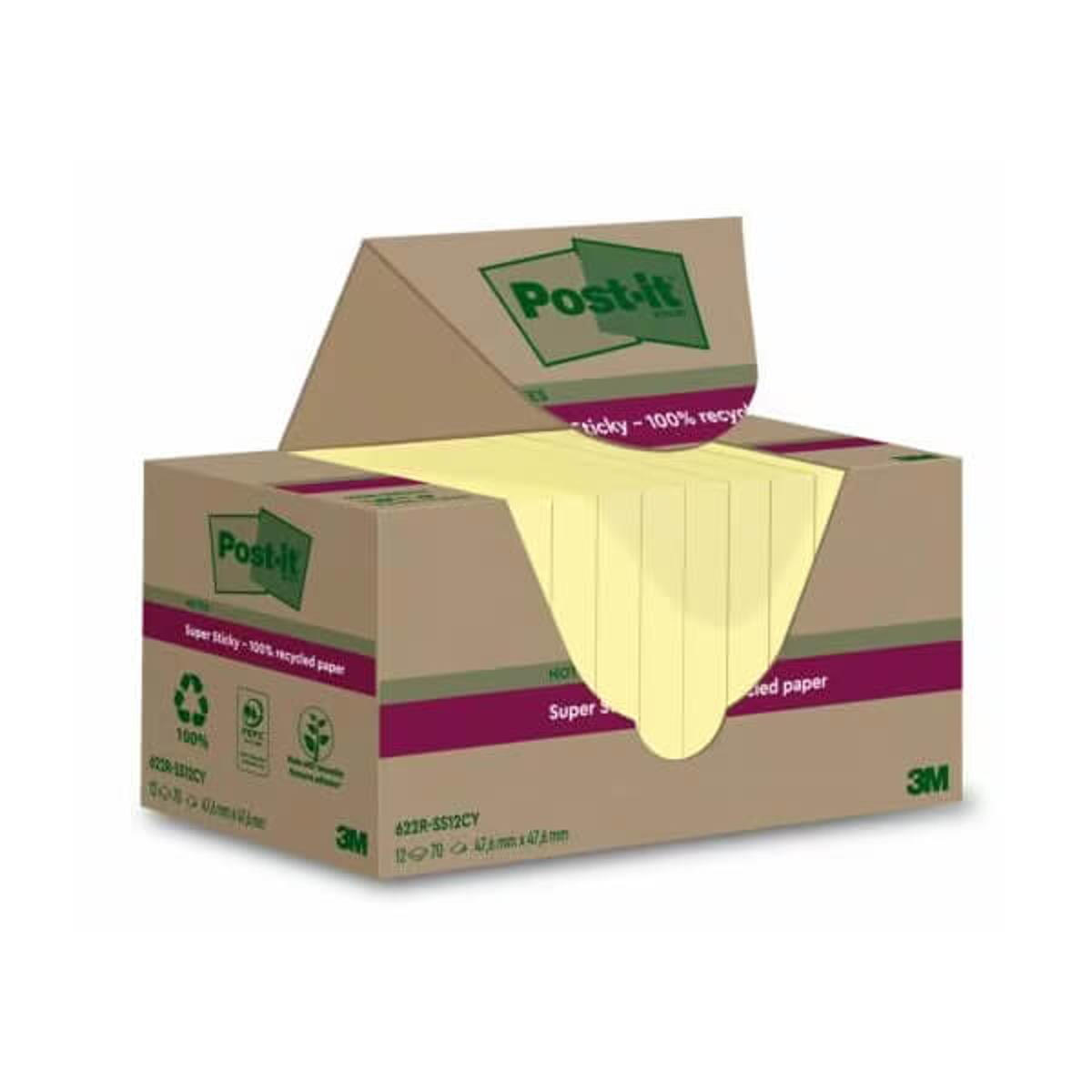 Post-it Super Sticky Recycle Canarygul 47,6x47,6mm 12blk Post-it
