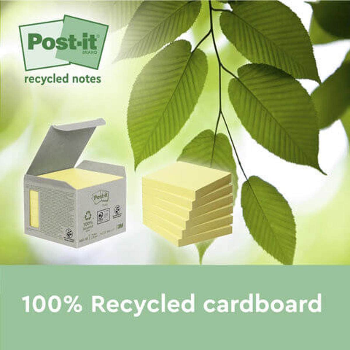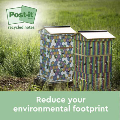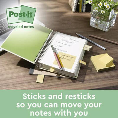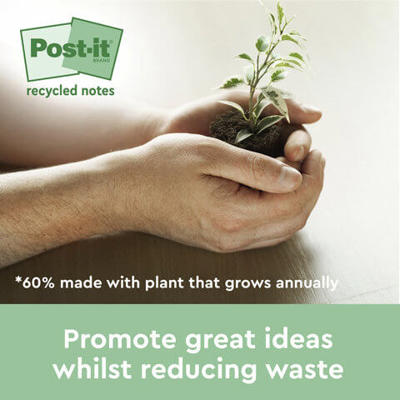 - Post-it® Recycled Super Sticky Notes er lavet af 100 % genbrugspapir og kan genbruges