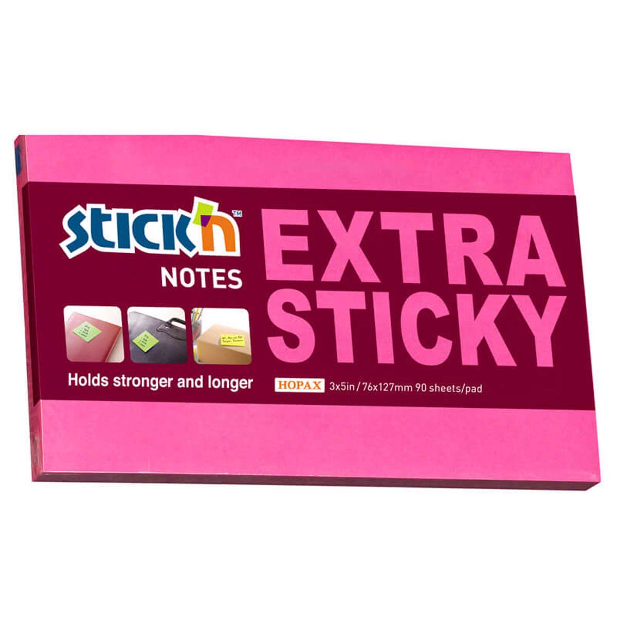 Selvklæbende Notes Stick´n, der holder igen og igen uden at beskadige underlaget. 90ark. Med ekstra klæb fastgøres dine notes endnu bedre og sidder på plads endnu længere end før.