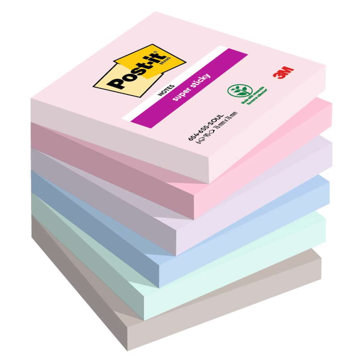 Post-it Super Sticky Notes klæber bedre og holder længere. De har dobbelt så god klæbeevne som de originale Post-it Notes, så du kan være sikker på, at din besked bliver modtaget. Disse selvklæbende notes er perfekte til lodrette overflader og overflader, som er vanskelige at klæbe på, f.eks. computerskærme, døre og vægge. De er ideelle til at tage noter eller skrive beskeder og påmindelser. De fås i de mest drømmende og bløde farver, er superstærke, ekstremt alsidige og designet til at fremhæve dine beskeder. De er fremstillet af PEFC-certificeret papir fra certificerede og bæredygtige skovbrug og indeholder et klæbemiddel, der består af 60 % bæredygtige materialer fra flerårige planter. Tag derhen, hvor rejsen fører dig med Soulful-kollektionens fredfyldte og drømmende farver. Download den gratis Post-it app, så du med det samme kan nedskrive og gemme dit arbejde og dele noter med teamet uden gentagelser eller forsinkelser.