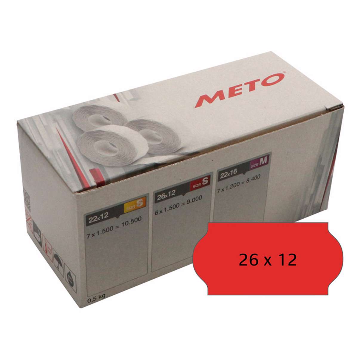 Etiket t/METO prismærkepistol 26x12mm neonrød 6x1500stk/rl.