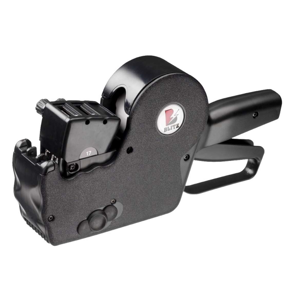 Prismærkepistolen Blitz har trykværk til at skrive 2 liniers etiketter. Skriv fx UDSALG, TILBUD, SALE, NETTO el. lign. øverst, hvor der er plads til 12 cifre og prisen nederst, hvor der er plads til 7 eller 12 cifre. Trykværket er nemt at indstille, og det er let at skifte prisetiketter på pistolen. Prismærkepistolen er lydsvag, robust og behagelig i brug på grund af det ergonomiske design. Passer til etiket med formatet 32x19 mm.