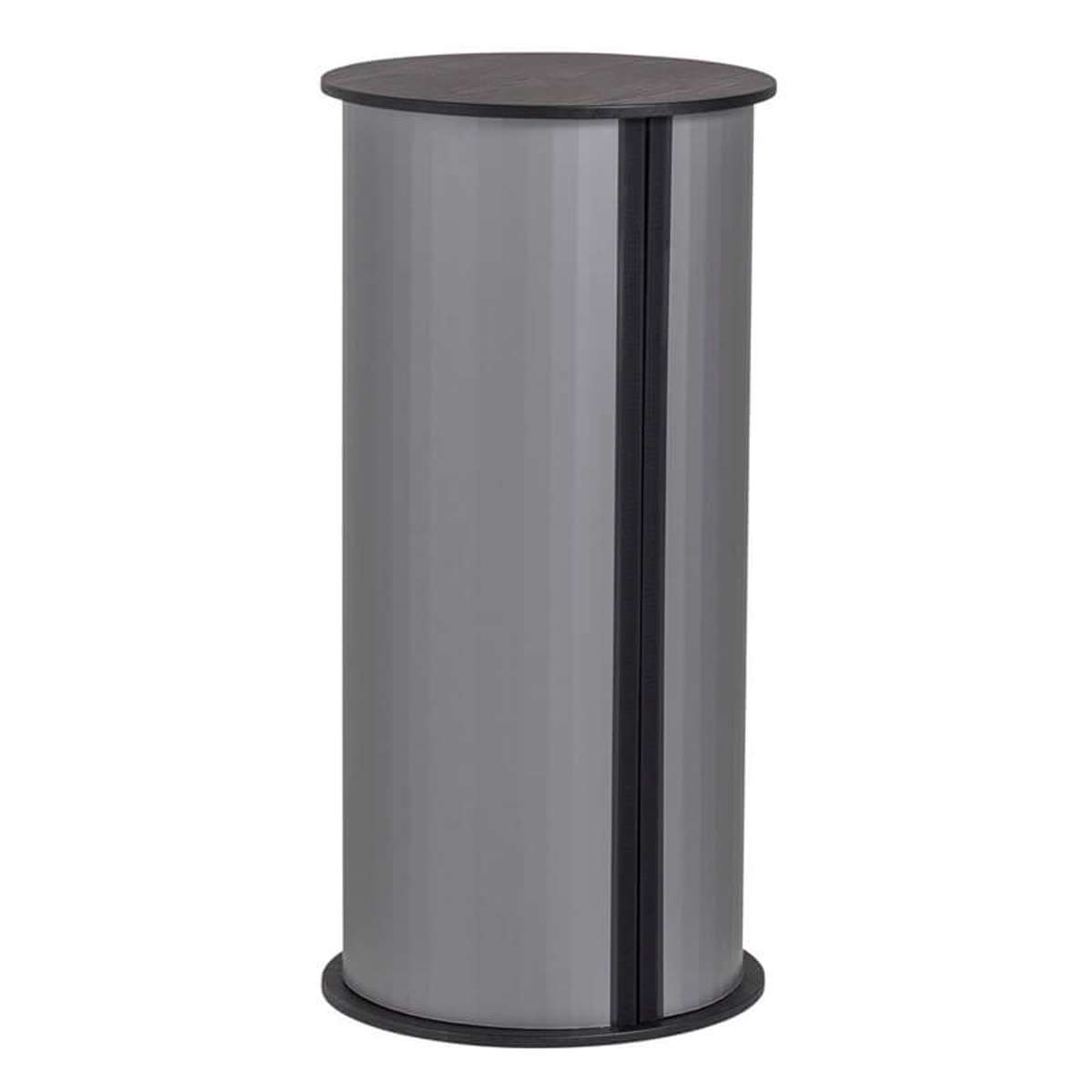 TWIN Rundt Messebord/podie er produceret i høj kvalitet og af stærk plast, med en sort bordplade.