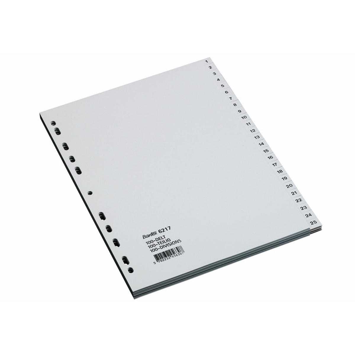 Dette A4-register fra Bantex er ideelt til de store opgaver, når du skal organisere dine dokumenter. Med nummererede faneblade fra 1-100 får du et fleksibelt og overskueligt system, og registret er delt med 4 gange 25 registerark, så registeringen evt. kan foretages i 4 forskellige mapper. Fanebladene er lavet af slidstærkt PP-materiale, og registret har 11 universalhuller, så det passer til de fleste brevordnere og ringbind.
