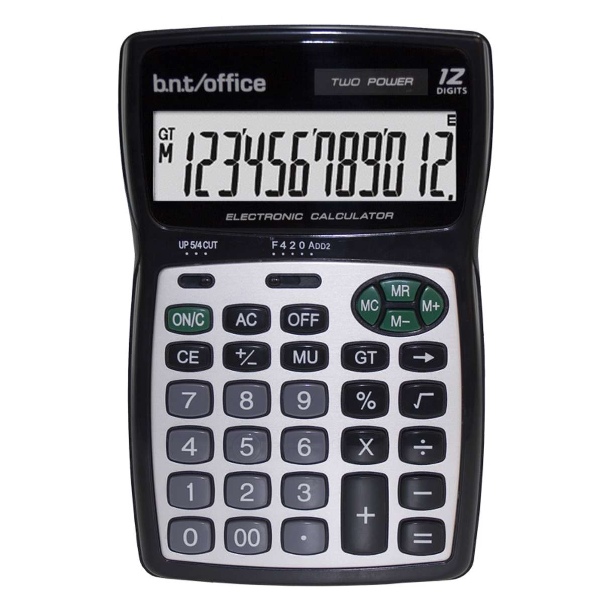 Regnemaskine / lommeregner med letlæseligt 12-cifret display (80x25 mm), store taster, hurtigkorrekturtast, procent-tast til beregning af skat og rabatter samt GT (Grand Total) og MU (Mark Up). Mulighed for at vælge decimal eller afrunding. Bordregner, også kaldet mapperegner, med kombineret solcelle- og batterienergiforsyning, så du kan bruge den alle steder.
