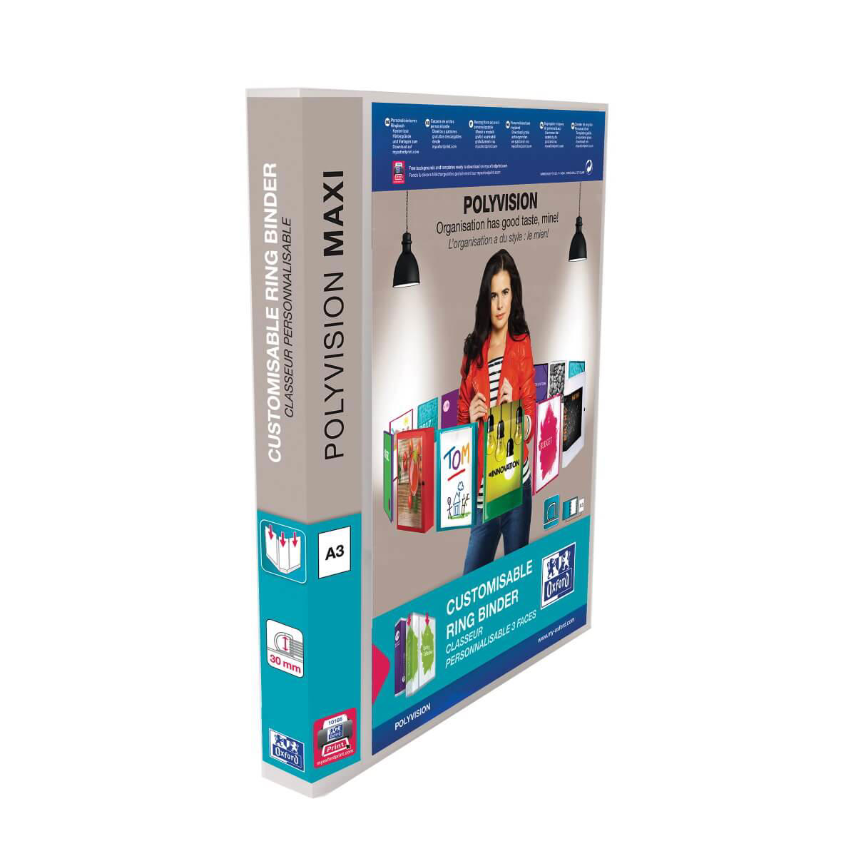 Hobbymappe fra Oxfords Polyvision Maxi serie i A3 Maxi-format, der passer perfekt med registre og faneblade, så plastlommerne og skillebladene ikke stikke ud fra ringbindet. Mappen har 3 udvendige indstikslommer på forside, ryg og bagside til at sætte sit personlige præg på mappen, hvilket gør mappen ideel som præsentationsbind, salgsmappe, demonstrationsmappe mm. Indstiksringbindet er fremstillet af transparent PP-folie, og har en 4 D-ringmekanisme med en ringdiameter på 30 mm, hvilket betyder at papirerne i ringordneren kommer til at ligge lige over for hinanden, så de er lettere at bladre i. Fås også i tværformat.