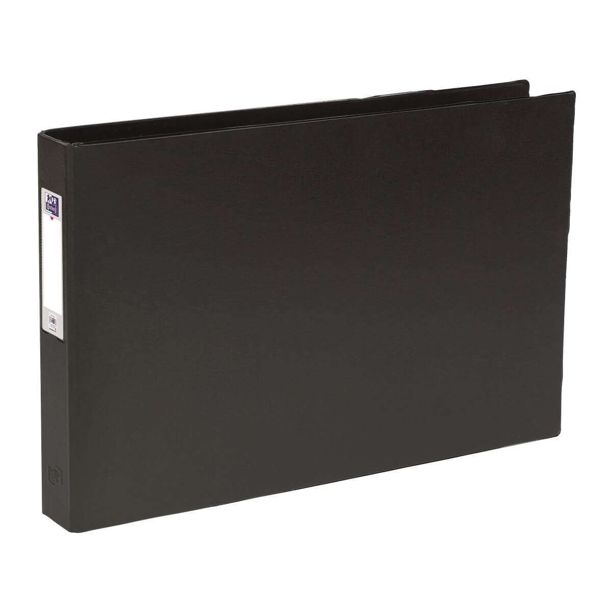 Oxford ringbind i A3 tværformat med stærk 40 mm 4-D ringmekanisme på den korte led og med en praktisk rygetiket, så man nemt og hurtigt kan finde den rigtige mappe. Ringbindet er fremstillet af 100% recirkuleret pap og betrukket med slidstærk PVC i sort farve. Fås også i højformat.