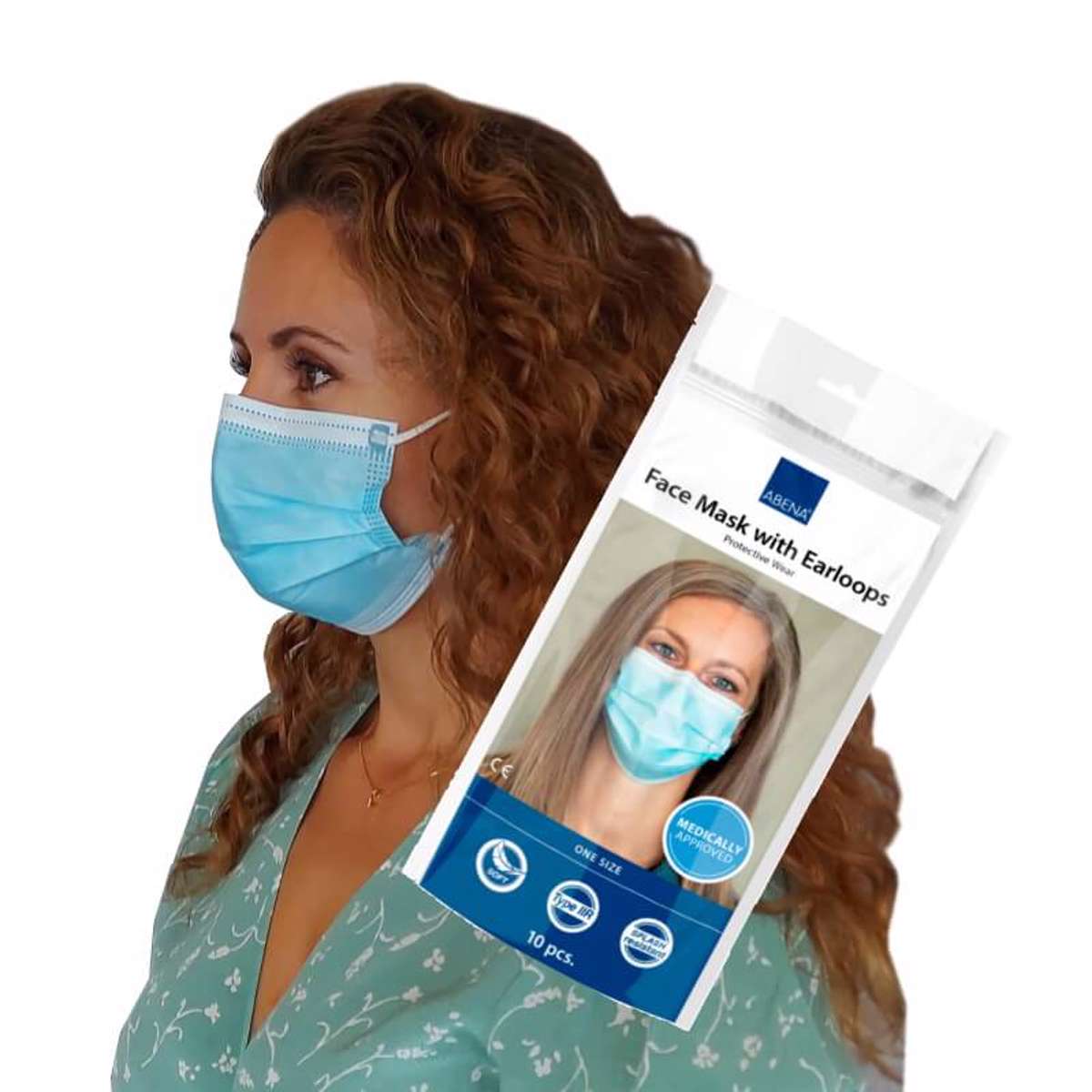 Mundbind engangs type IIR 3-lags CE EN14683 m/elastik pk/10