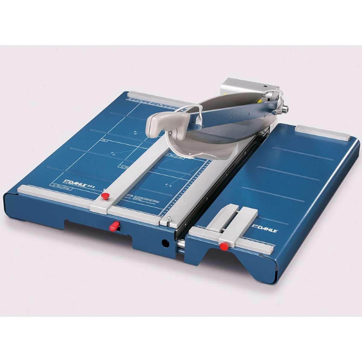 Som Dahle 867 men inklusiv front- og smalskæreanlæg, præcisions lasermodul og ekstra stort side anlægsbord. Med skæremaskiner fra Dahle er du garanteret en kvalitet helt i top. Selve skærebordet er udført i en kraftig metalkonstruktion, som sikrer, at maskinen står godt fast på underlaget og er nem at arbejde med. Komponenter som f.eks. over- og underkniv fremstillet af Solingen stål, sikrer flot og ensartet udførelse af dine skæreopgaver. Maskinen leveres med anlægsbord både bagved og foran kniven (frontanlæg), hvilket gør skærearbejdet utrolig nemt - også selvom du skal skære helt små emner. Laserstråle indikerer nøjagtigt skærelinje. Automatisk pressebalk integreret i skærehåndtaget (kan slås fra, hvis du skal skære bløde og sensitive materialer, der ikke kan tåle pres). 5 års garanti (gælder ikke sliddele).