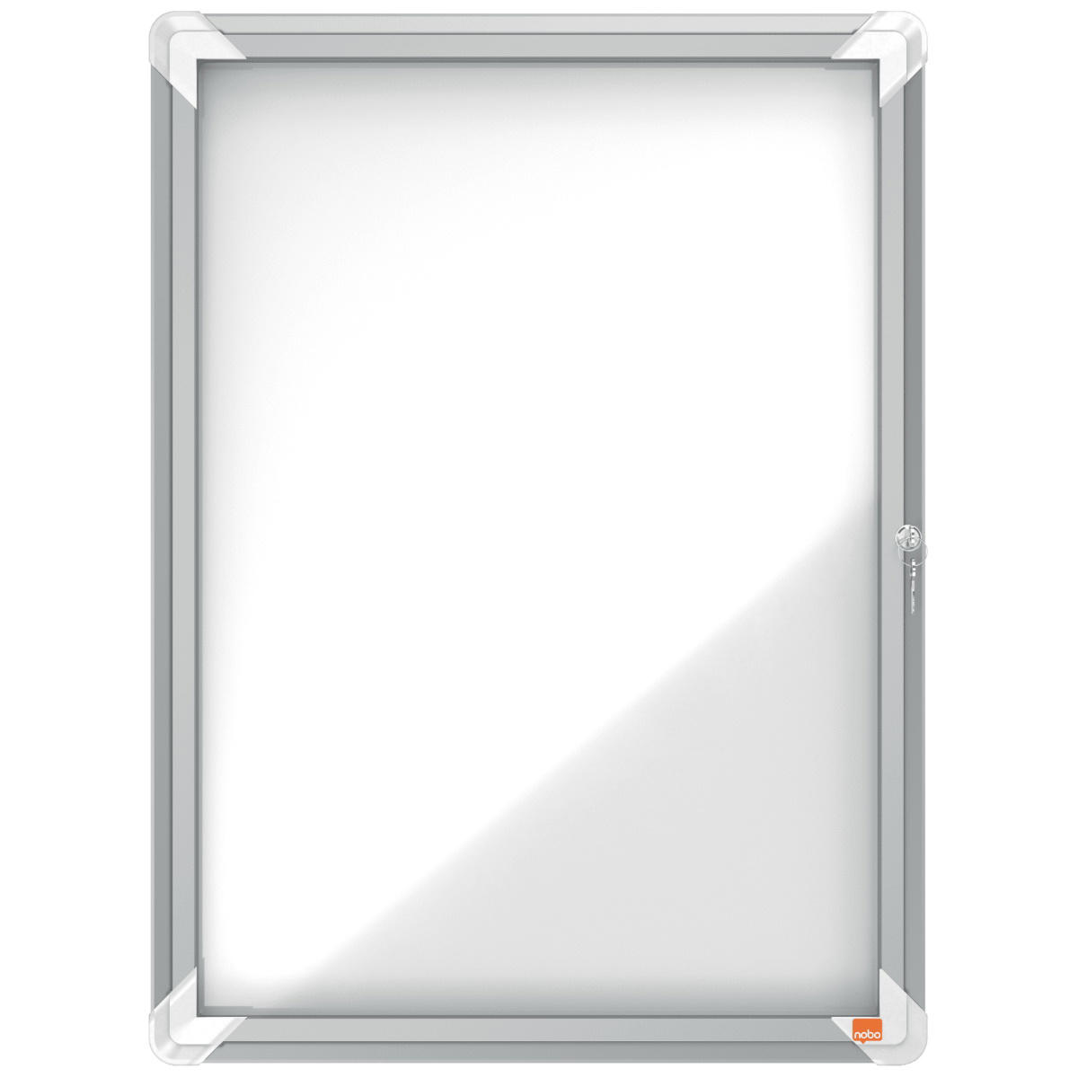 - Udendørs vejrbestandigt låsbart opslagsskab med hængslet låge i sikkerhedsglas og med sidelås