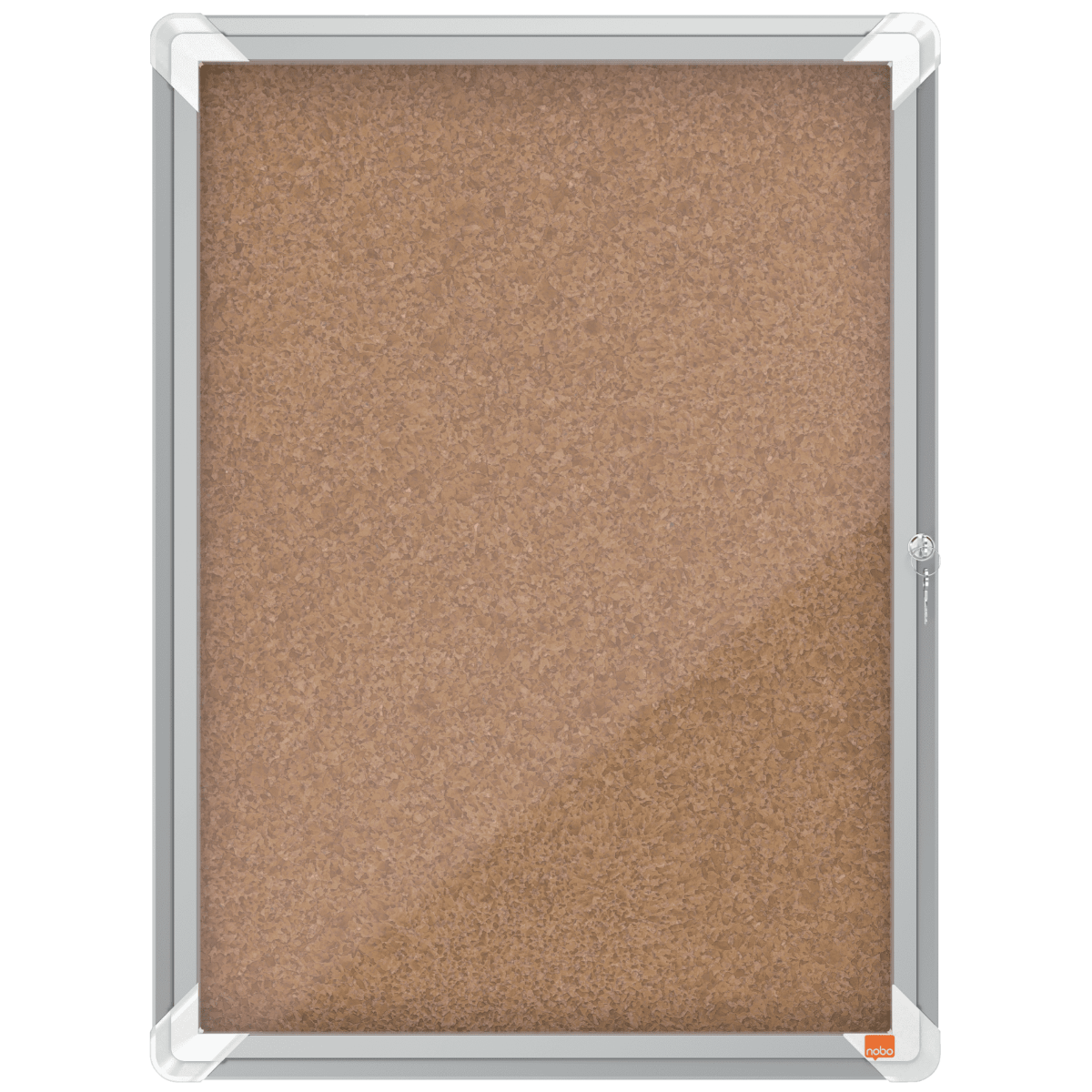 Låsbart opslagsskab i kork, til indendørs brug, med hængslet glaslåge og med sidelås. Komplet med moderne, stilfuld aluminiumsramme og vægmonteres gennem hjørnerne. Opslagstavle med kork overflade til sikkert at sætte dine noter på med kortnåle. Størrelse: 4xA4 ark.