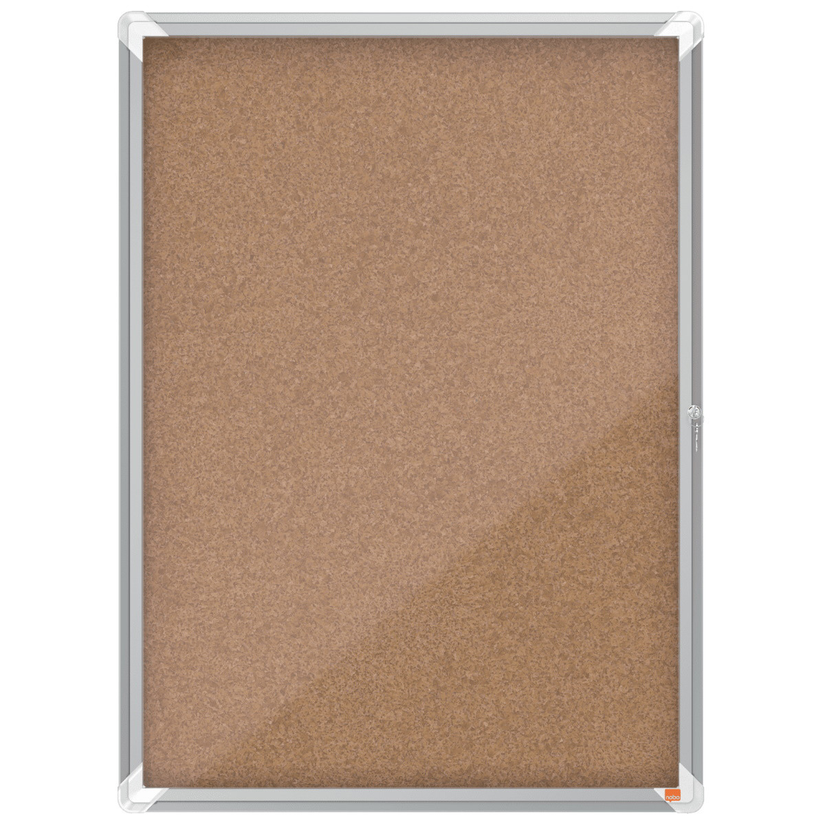 Låsbart opslagsskab i kork, til indendørs brug, med hængslet glaslåge og med sidelås. Komplet med moderne, stilfuld aluminiumsramme og vægmonteres gennem hjørnerne. Opslagstavle med kork overflade til sikkert at sætte dine noter på med kortnåle. Størrelse: 9xA4 ark.