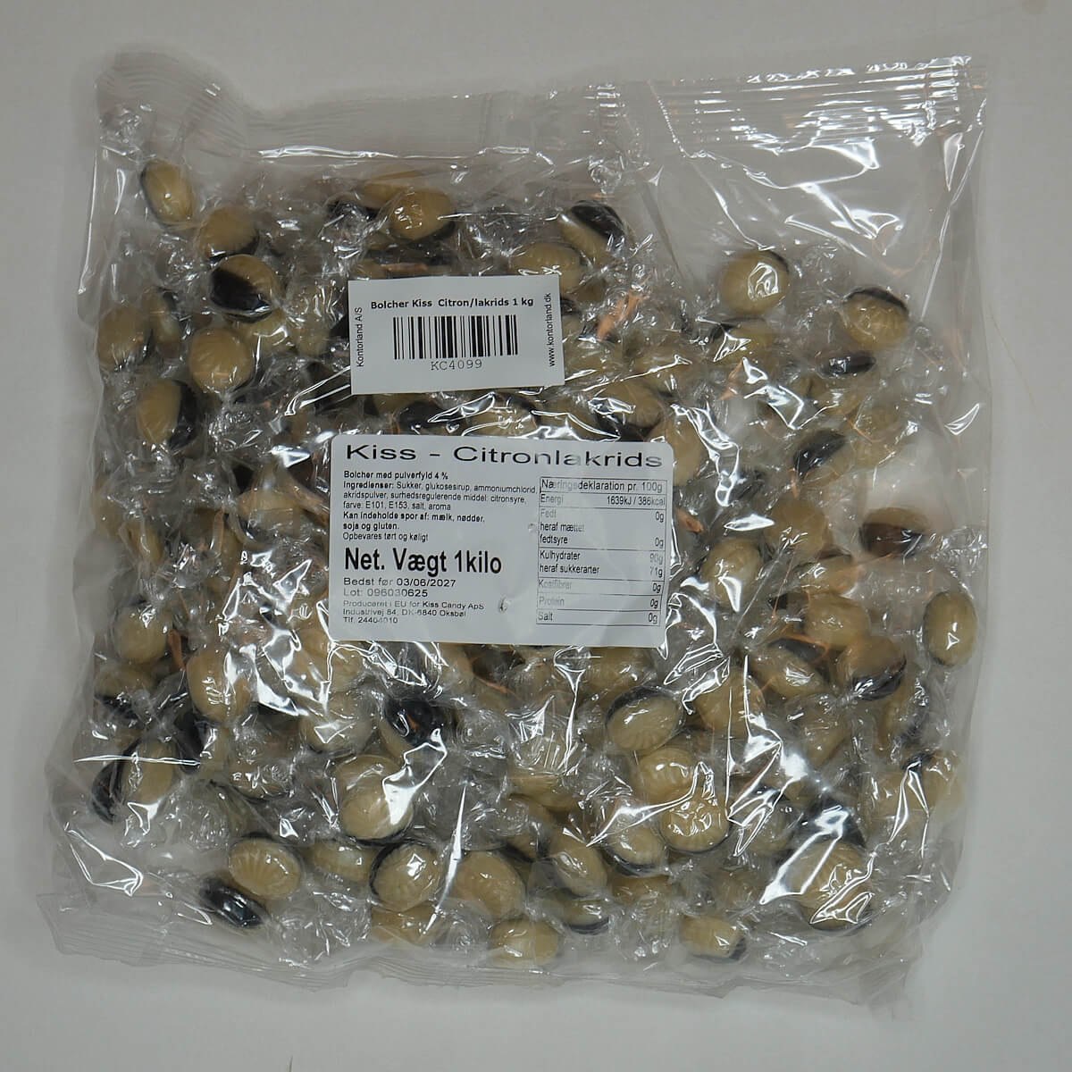 Citron-lakrids bolcher fra Kiss Candy 1 kg med pulverfyld 4%
