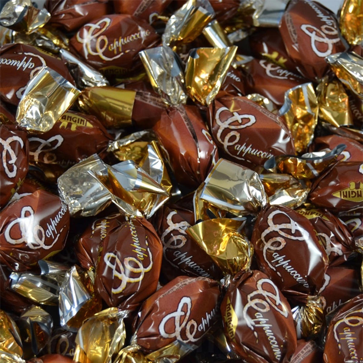 Lækre Choco Cream Cappuccino karameller i 1 kg. boks - enkeltvis indpakkede. Slik til kontoret eller mødet.