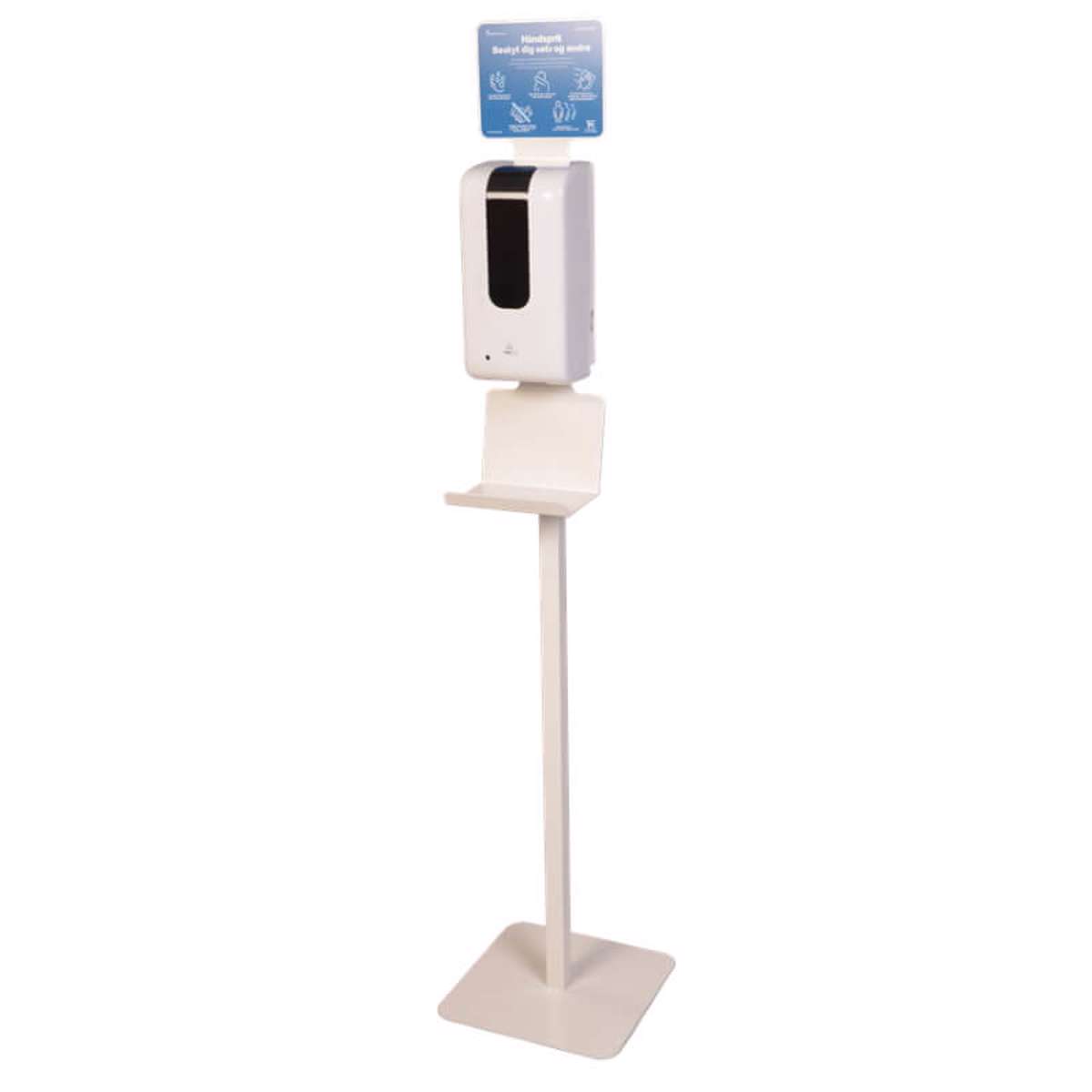 Gulvstander inkl. touchfree og systemfri dispenser med drop samt selvklæbende infotavle til top.