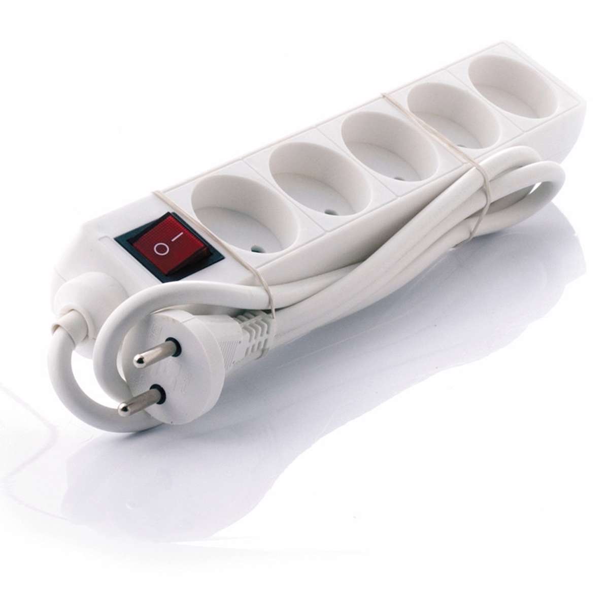 D-mærket 5-vejs forlænder - stik med 2-polet kontakt, der gør det muligt at tilslutte 5 enheder sikkert til en elektrisk udgang.