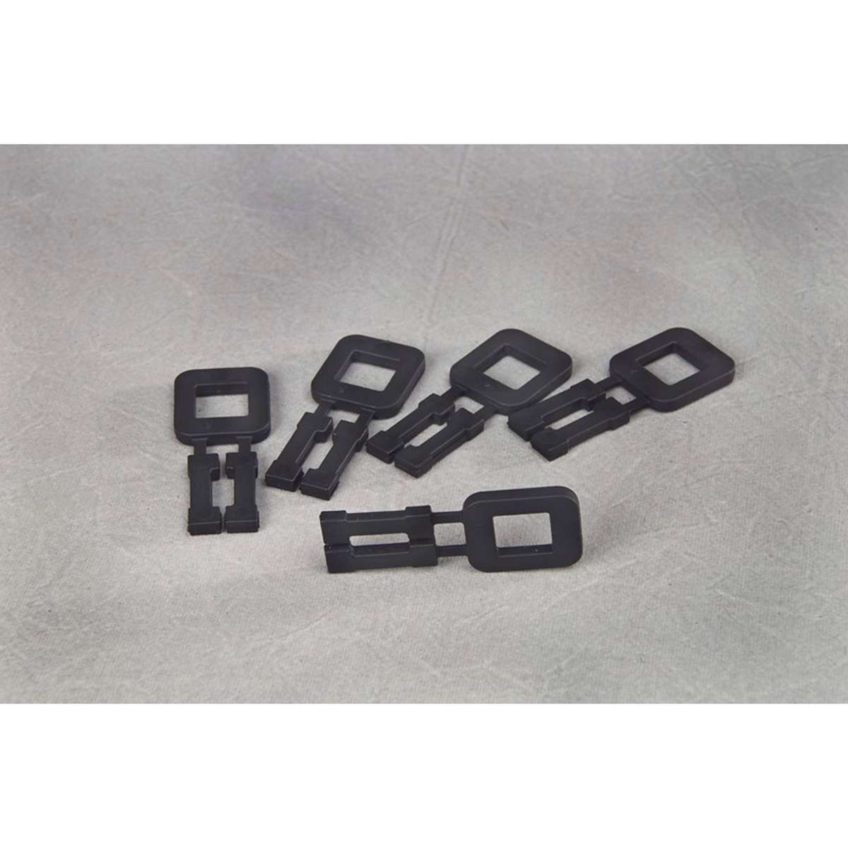 13 mm sorte plastspændere til håndstramning af PP bånd på 12 mm. Pakning med 1.000 stk.