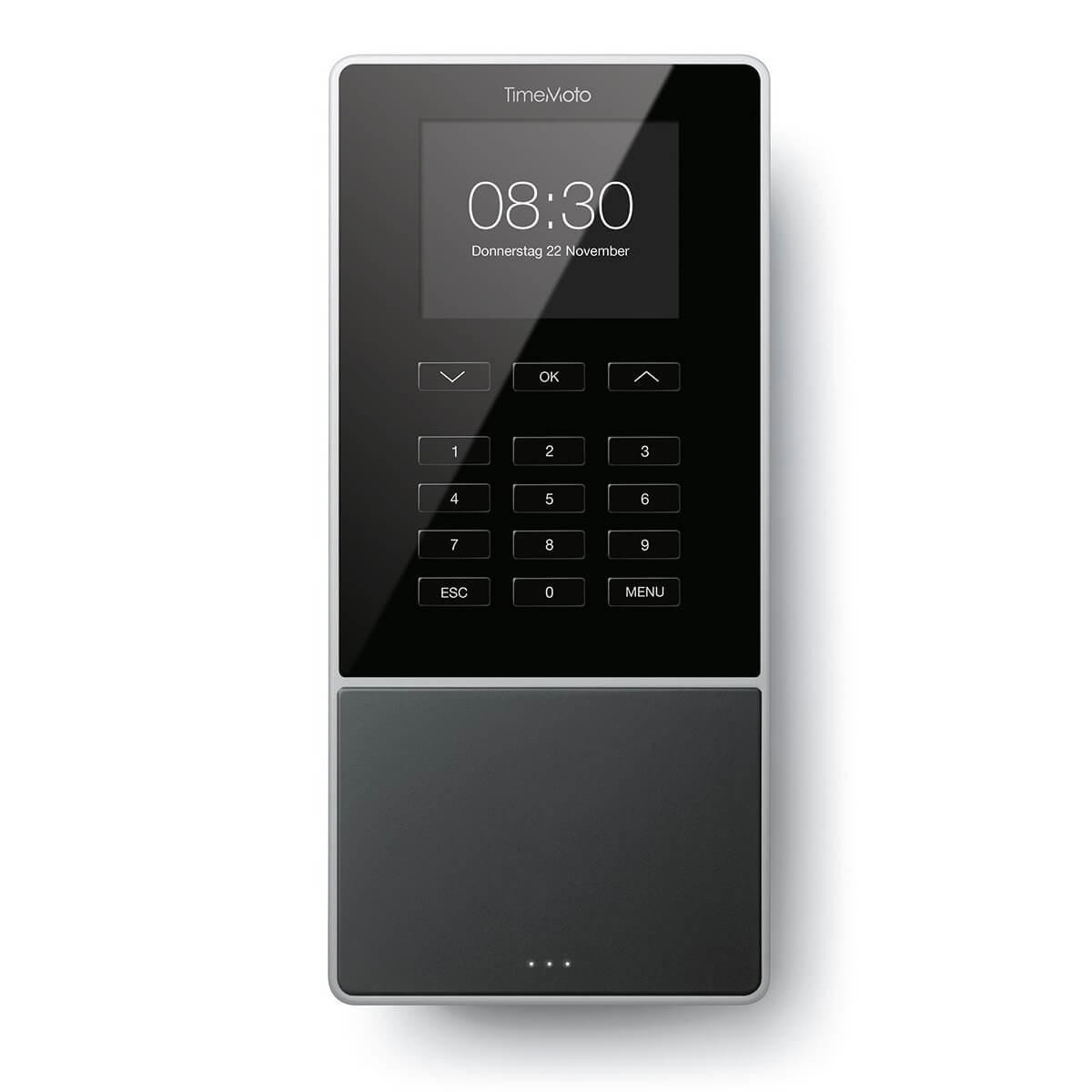 TimeMotoTM-616 med RFID-sensor - Let og sikker registrering af arbejdstimer med eget personlige RFID-kort. TimeMoto TM-616 er egnet til op til 200 brugere, og kan gemme op til 10.000 tidsregistreringer.
