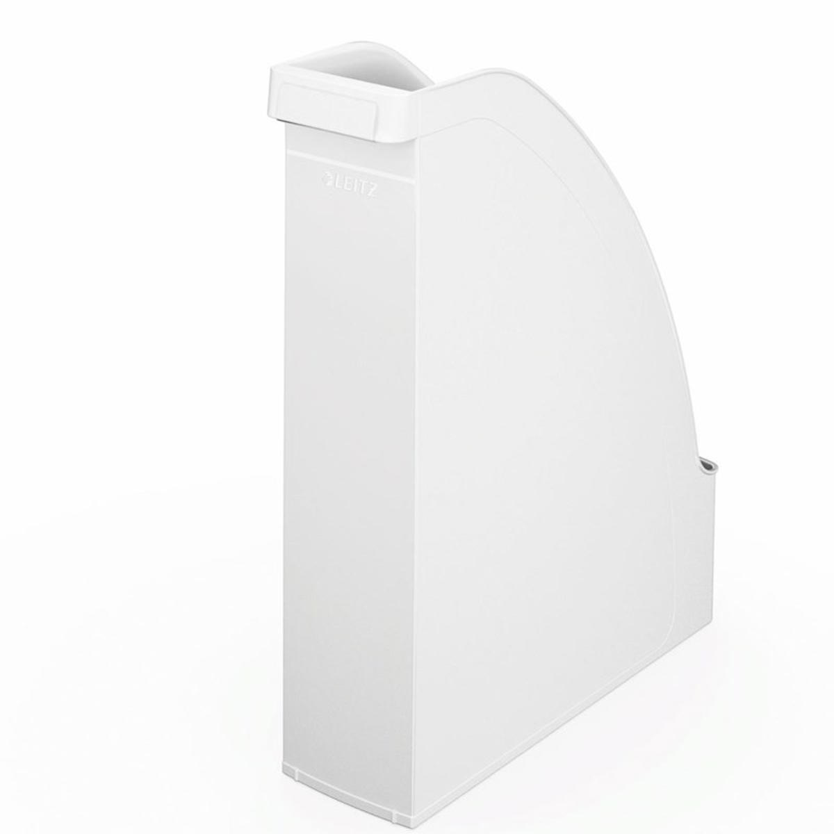 Lækker og funktionel tidsskriftsamler i solid formstøbt plast med stor indvendig kapacitet (70 mm). Kassetten har mange anvendelsesmuligheder idet den har et design der både kan placeres stående og liggende, og er udviklet til både bord, skab og reol. Den høje forkant holder indholdet på plads, og passer til de andre kvalitetsprodukter i Leitz Plus serien. Aftagelig etiketholder og etiket medfølger. Etiketter kan designes og printes på www.leitz-easyprint.com