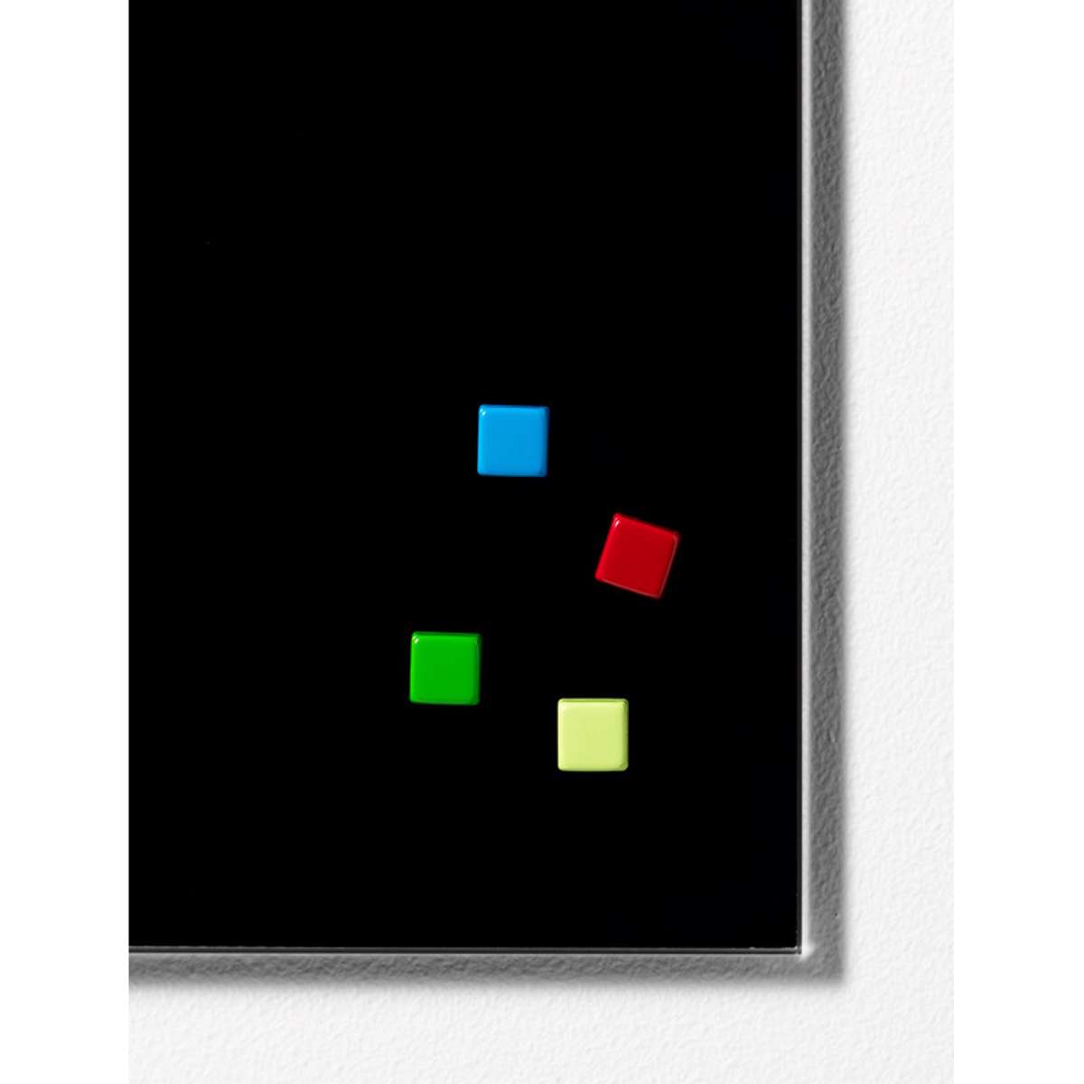 Stærke firkantede magneter til glassboards i lækre farver: grøn, lys grøn, rød og koboltblå