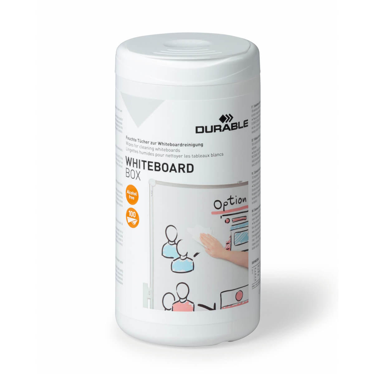 Med Durable's whiteboard renseservietter kan du nemt og hurtigt rengøre dit whiteboard. Disse fugtige renseservietter fra Durable er specielt designet til skånsom rengøring af whiteboards. Servietterne er bionedbrydelige og vædet med en alkoholfri væske, der effektivt fjerner tekst fra whiteboardmarkere uden at beskadige overfladen. Den genlukkelige dåse sikrer, at servietterne forbliver fugtige og klar til brug, når du har brug for dem.