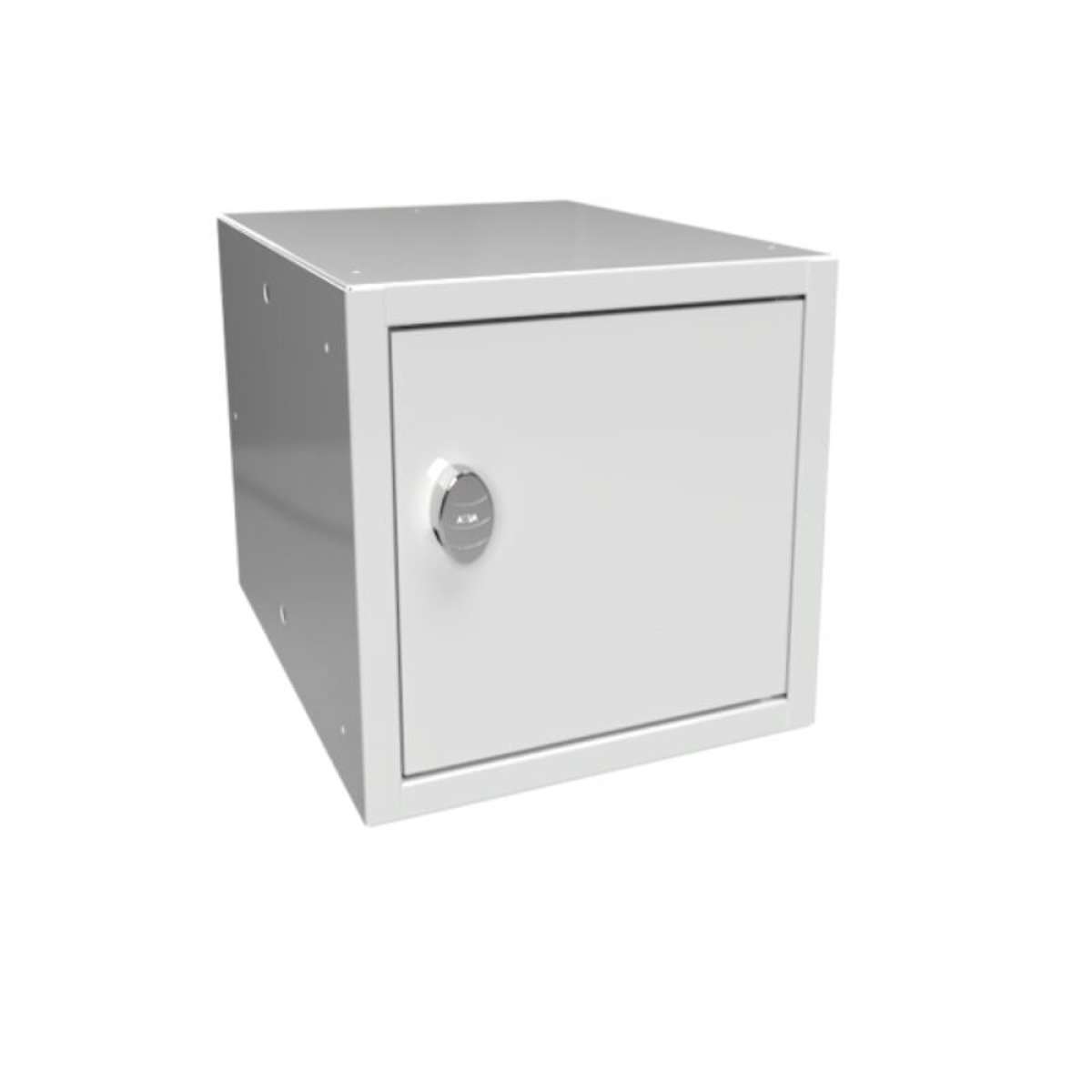 Når du har brug for en diskret og pålidelig løsning til opbevaring, er denne opbevaringsboks det oplagte valg. Med sin kompakte størrelse på 270x270x350 mm passer den perfekt ind i både kontormiljøer, værksteder og hjem, hvor der er behov for struktur og sikkerhed. Det helsvejste kabinet i pulverlakeret lysgrå (RAL 7035) udstråler kvalitet og robusthed, mens døren med greb for hængelås gør det muligt at sikre indholdet efter behov.