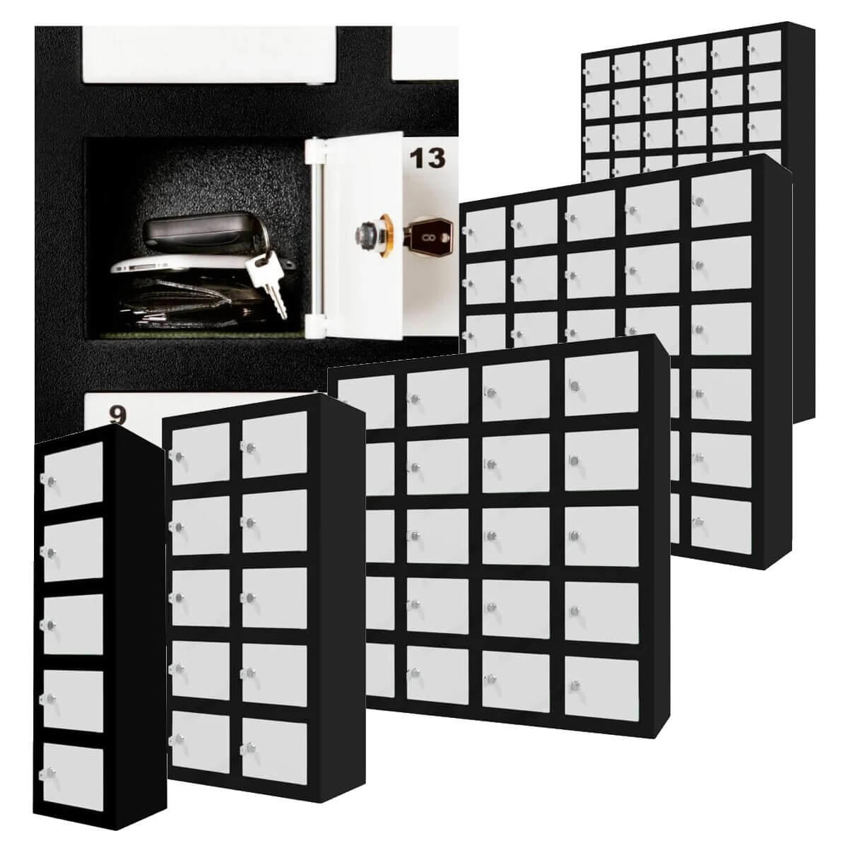 Opbevaringsskab til mobiltelefoner og andre værdigenstande fra Sono i 7 forskellige størrelser 5-80 rum - Sikker opbevaring af værdigenstande!