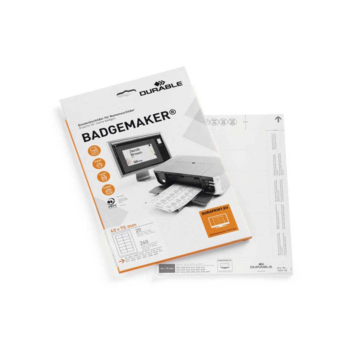 Mikro-perforeret indstik til kongresmærker på A4 ark fra Durable. Kortene er hvide, lette at skille ad, og med skarpe kanter. Velegnet til laser, inkjet og kopi.