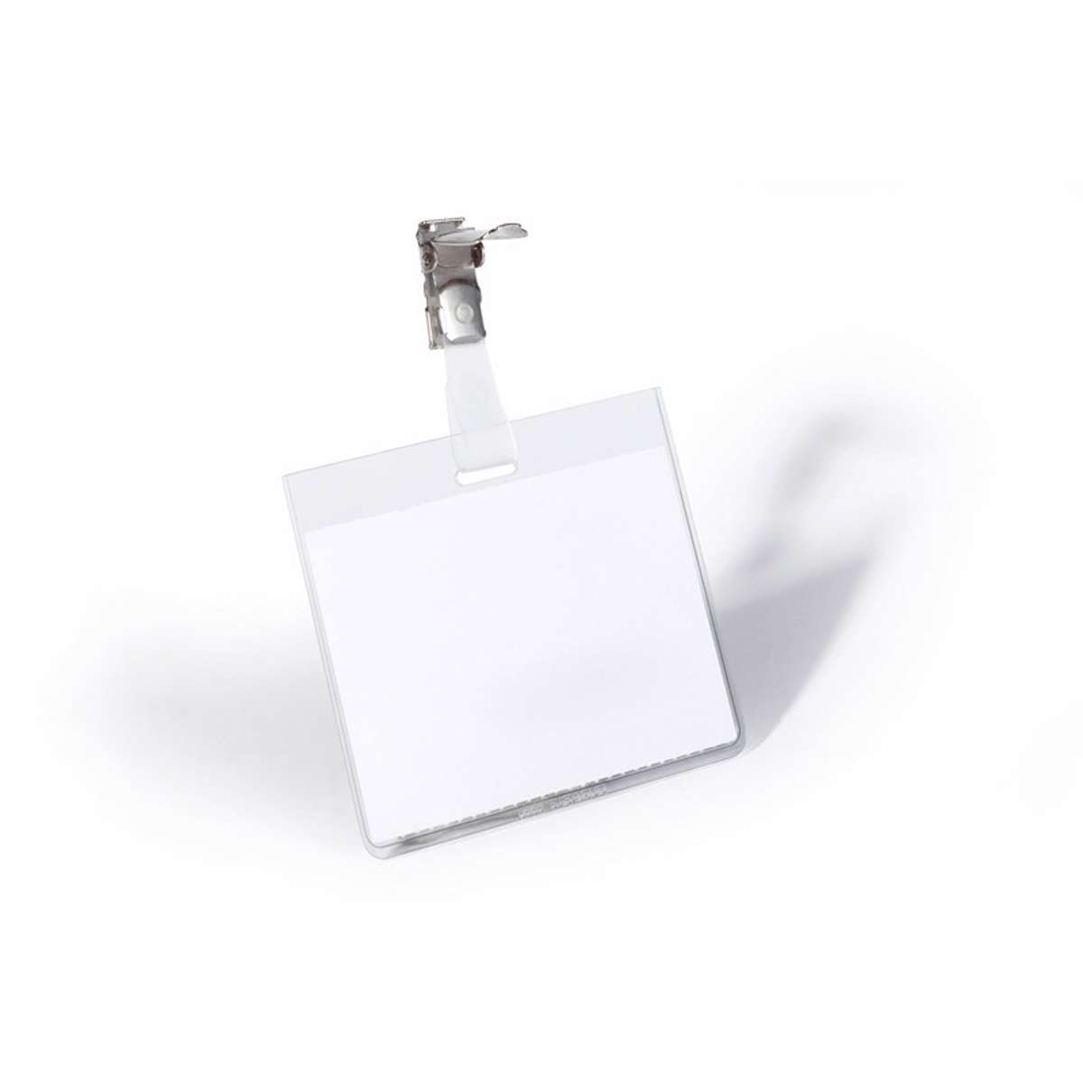 Navneskilt i tværformat med klemme på strop (seleclips). Dette kongresmærke hænger altid i den rigtige position idet at metalklemmen er drejelig. Ved fastgørelse og lukning af strop forsegler lommen, sikring af indstikket. Hul design tillader kombination med kæde, yoyo eller tekstil halsbånd. Indstik medfølger. Mål indstik: 60x90mm (HxB). Indstiksetiket på A4 ark til udskrivning i printer kan bestilles separat (Durable art nr 145602). Design selv en personlig designet kongresmærke med gratis skabelon på www.duraprint.eu.