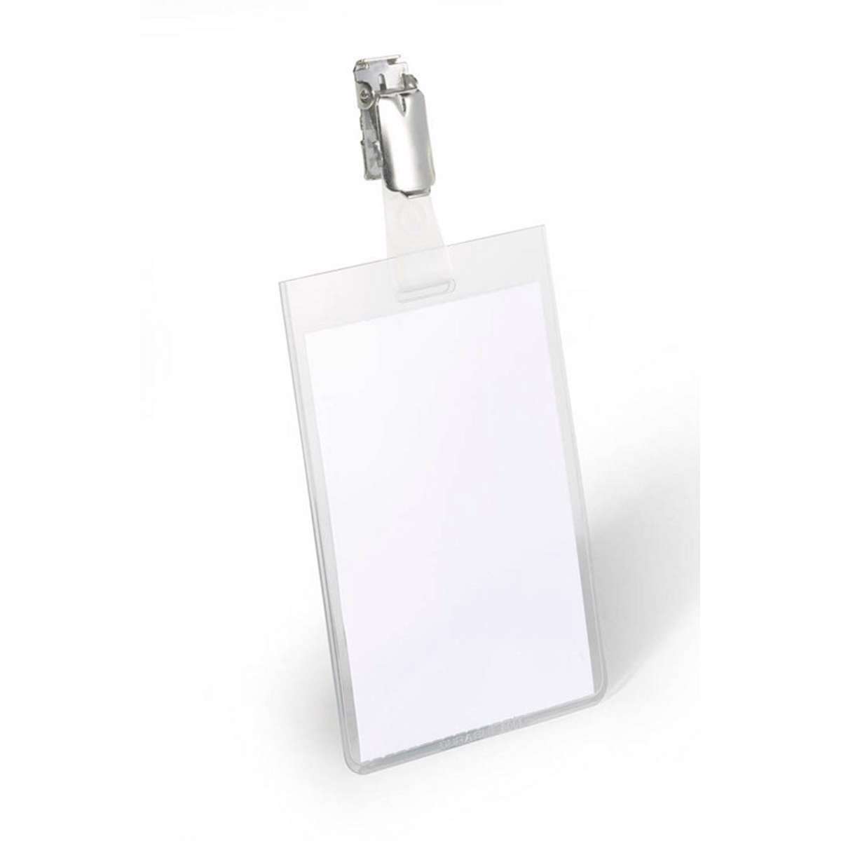 Navneskilt med drejelig klemme til fastgøring. Lukket navneskiltholder beskytter indstikket. Kongresmærket er med udstanset hul som muliggør kombination med kæde, yoyo eller tekstilbånd. Særlig velegnet til udlevering til mange personer, f.eks. i forbindelse med konferencer og store arrangementer, hvor skiltene som oftest ikke bliver leveret tilbage. Nem udskrivning med gratis DURAPRINT®-software med databasefunktion.
