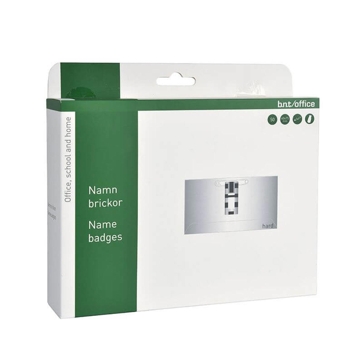 Kongresmærke eller navneskilt 40x75 mm med klemme eller clips, sikkerhedsnål og indstik for tydelig og sikker identifikation af besøgere, medarbejdere eller konferencedeltagere. Skiltet er fremstillet i plastik for at kunne bruges igen og igen. Klemmen er skånsom mod tøjet og foretrækkes derfor ofte ved længerevarende brug. Kombinationen af klemme og sikkerhedsnål sikrer, at det er nemt at tage skiltet på uanset beklædning.