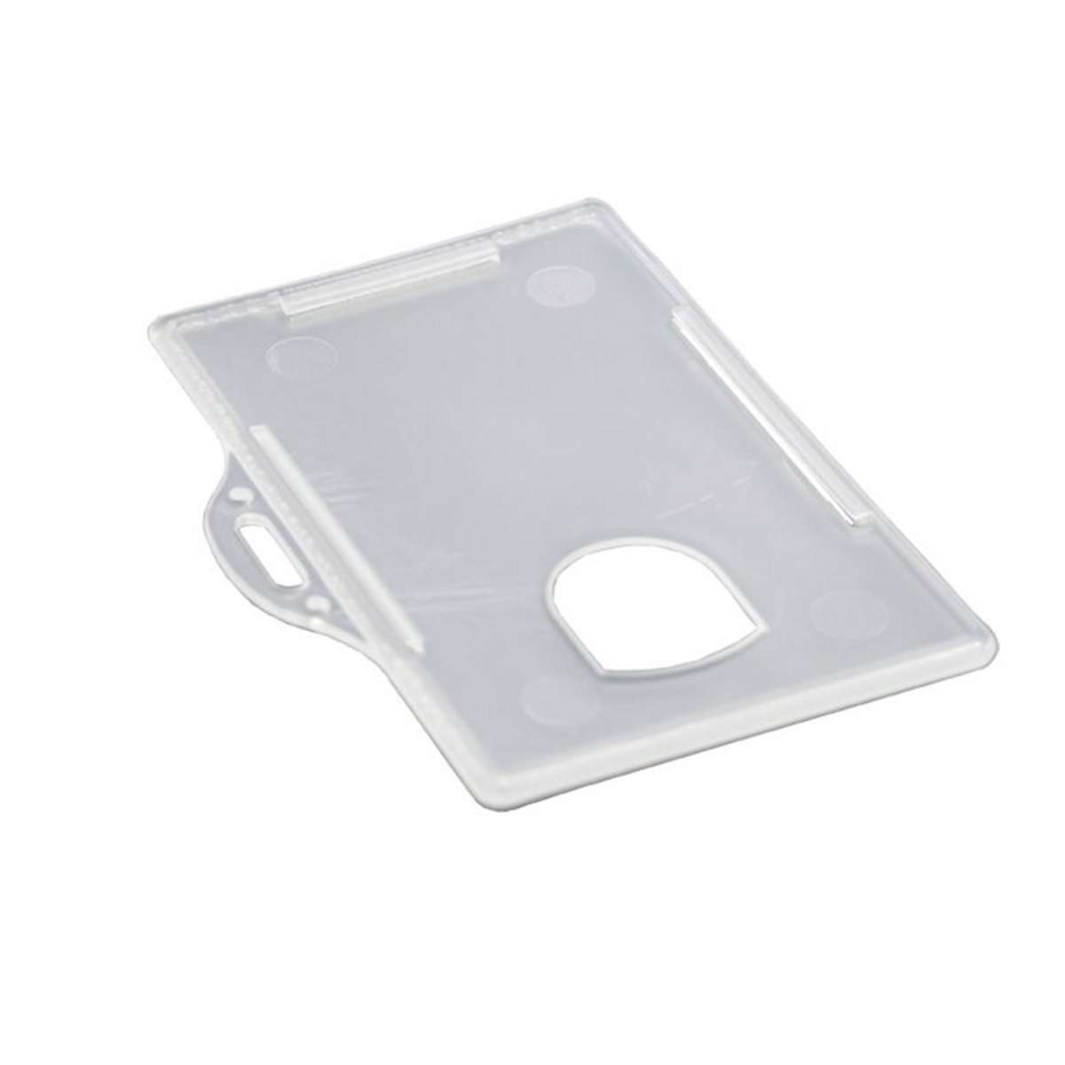 Åben kortholder til ID-kort, kongresmærker, adgangskort mm af hårdt glasklart plastik i liggende format og med fingerhul på bagsiden. Passer til at yoyoholder eller halsbånd. Sørger for at beskytte ID-kortet, at man altid kan finde kortet, og at det er nemt at vise frem i receptioner og ved kortlæsere. Fingerhullet gør det nemt at skubbe ID-kortet ud med fingeren. Kortholderen er velegnet til brug, hvor ID-kortet udsættes for risiko for buk, ridser og andet.