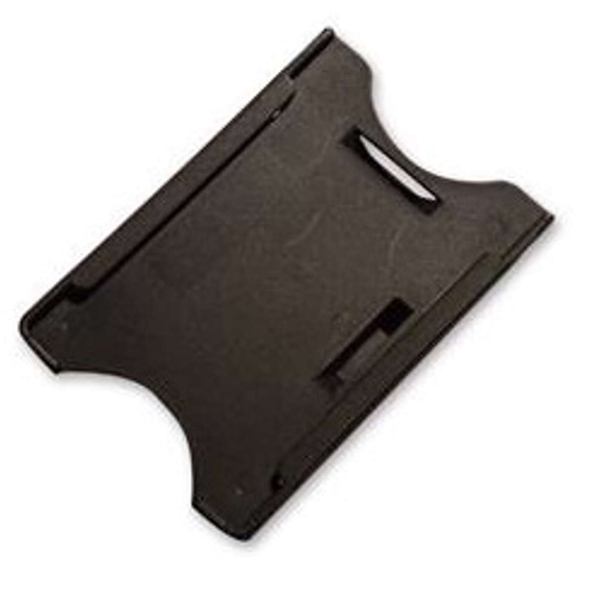 Denne ID-kortholder er åben i sort plast til ID-kort, personalekort eller legitimation. Kortholderen bruges lodret og passer til standard ID-kort.